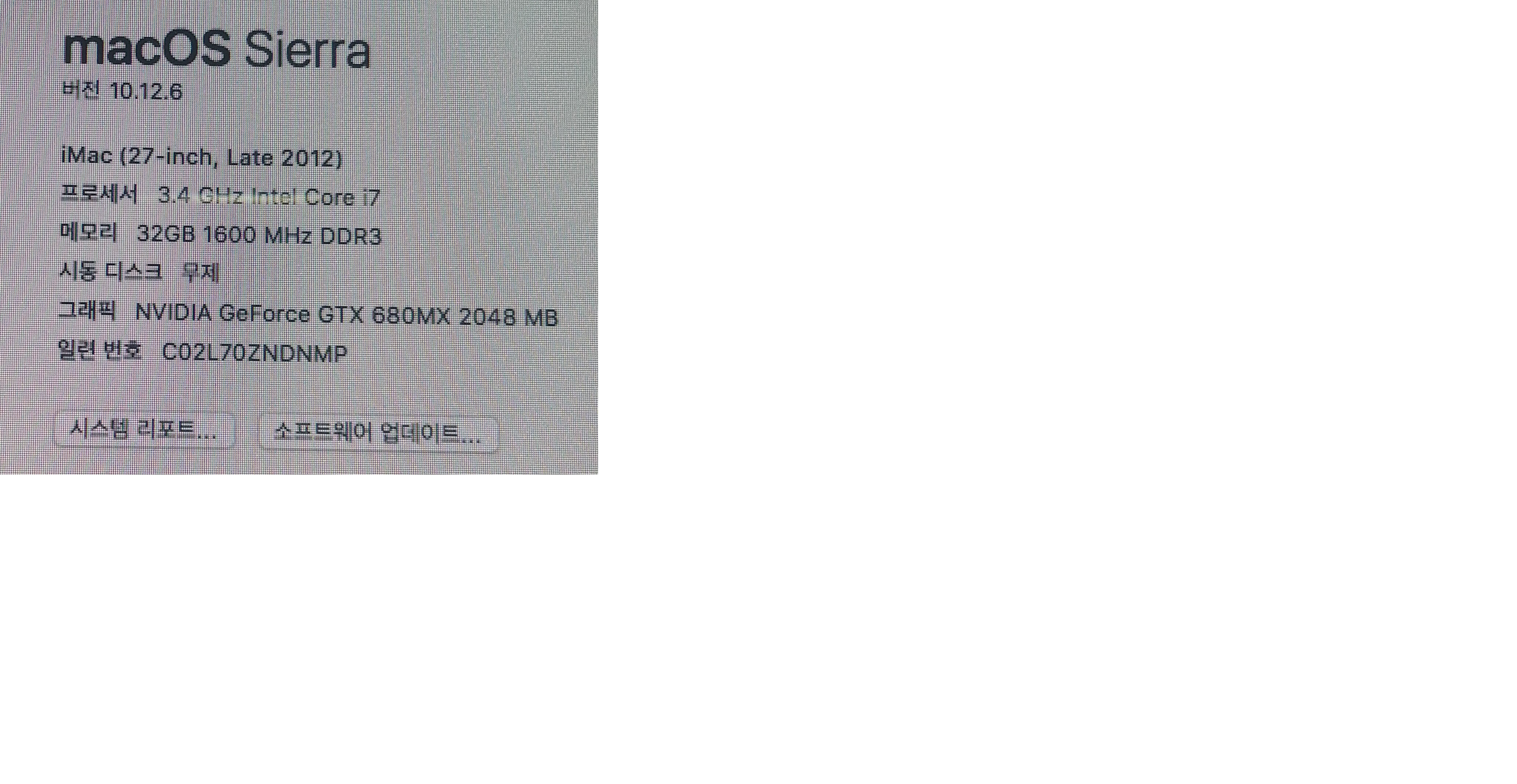 아이맥 27인치 2012 (i7/ssd128+HDD3000G/ram32G/GTX680MX) 팜