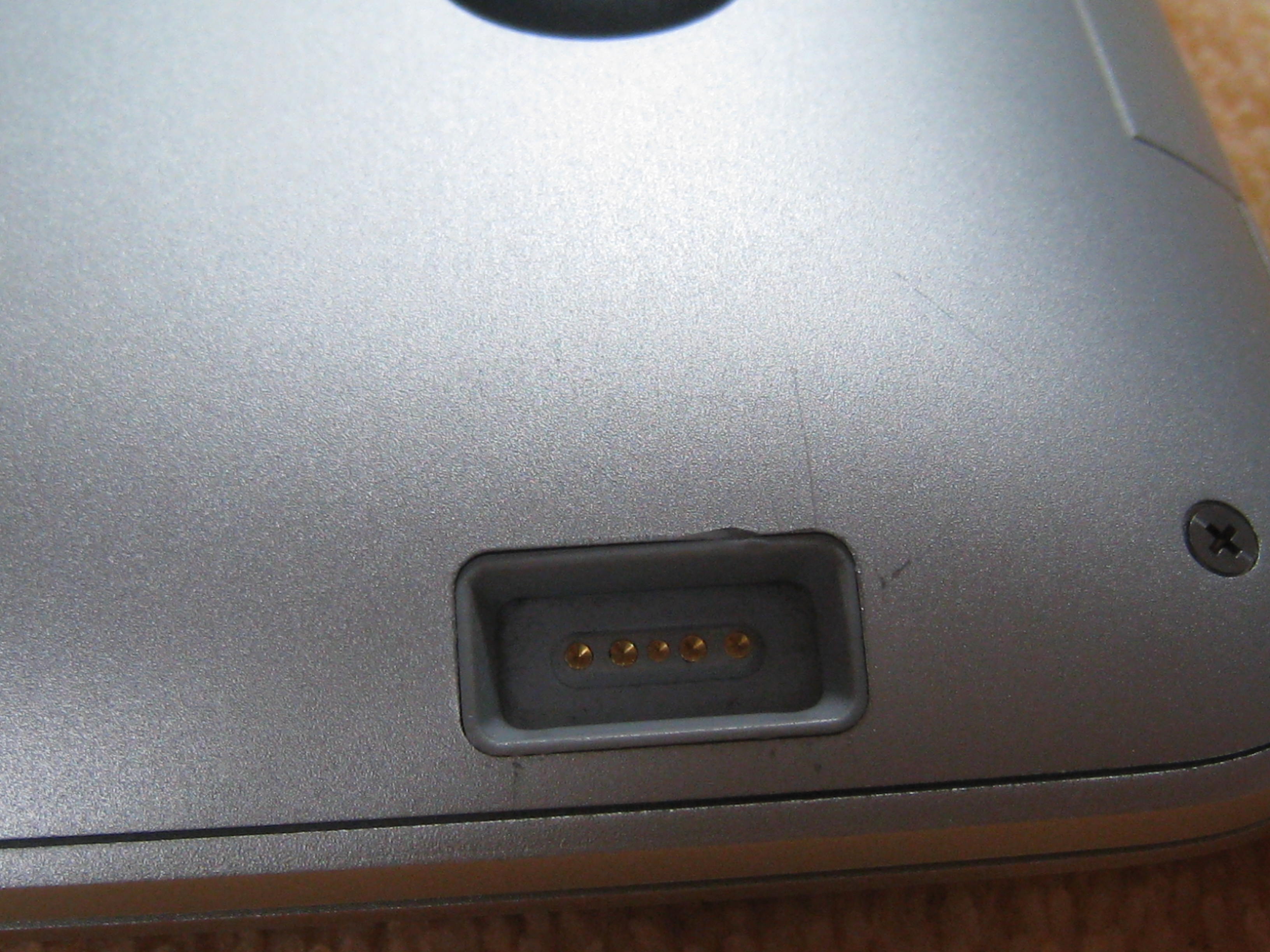보시다시피 애플로고 위쪽에 아주 살짝 패였고, 배터리 충전하는 쪽이 좀 기스가 있습니다.