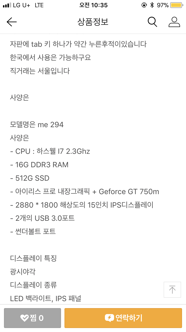 - CPU : 하스웰 I7 2.3Ghz