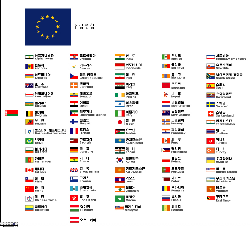 <세계국기>전세계전부는 아닌거같지만요~~참고가되시길. deliday 일반 24 25724 2007.10.02 14:22 -0001.11.30 00:00 세계국기.ai (0byte) + 1307 ^-^